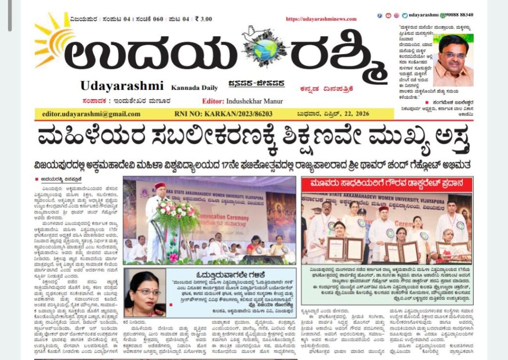 Share Facebook Twitter LinkedIn Email Telegram WhatsApp udayarashmi-22-APR-2026DownloadBIJAPUR NEWS bjp public public news udaya rashmi Udayarashmi today newspaper udayarashminews.com