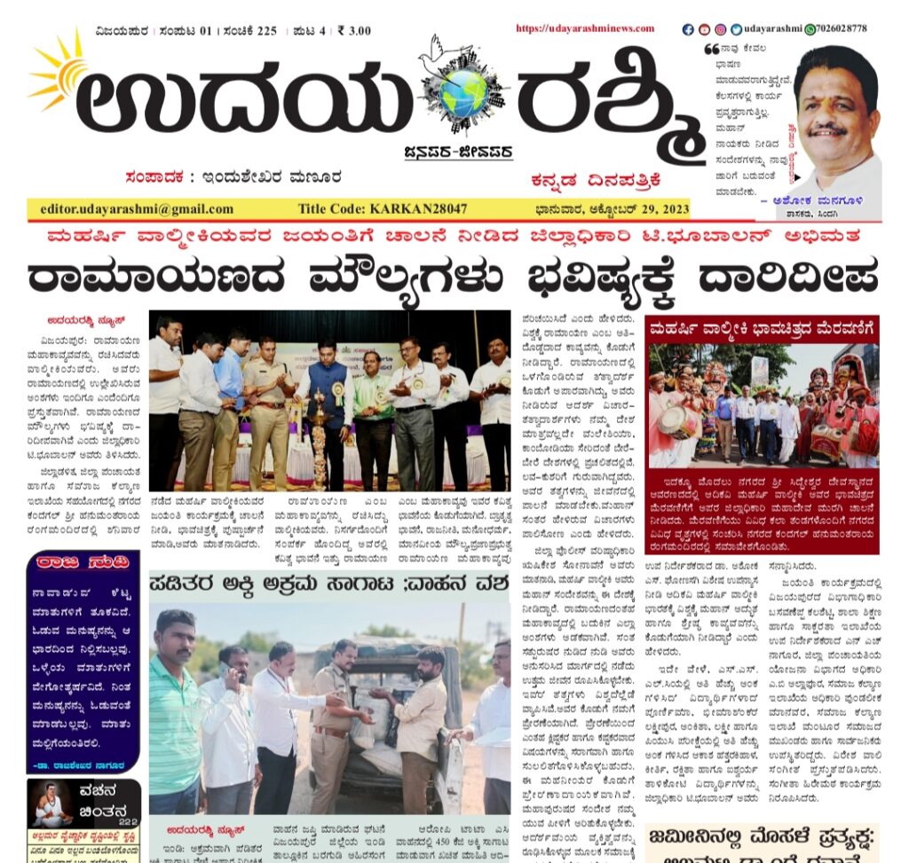 Share Facebook Twitter LinkedIn Email Telegram WhatsApp Udayarashmi kannada daily newspaperUdayarashmi-29-Oct-2023-2DownloadBIJAPUR NEWS public public news udaya rashmi Udayarashmi today newspaper