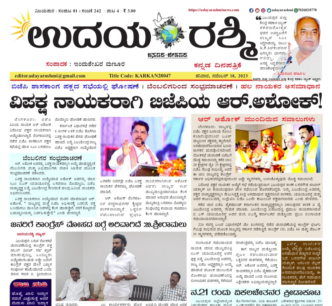 Share Facebook Twitter LinkedIn Email Telegram WhatsApp Udayarashmi kannada daily newspaperUdayarashmi-18-Nov-2023DownloadBIJAPUR NEWS public public news udaya rashmi Udayarashmi today newspaper udayarashminews.com