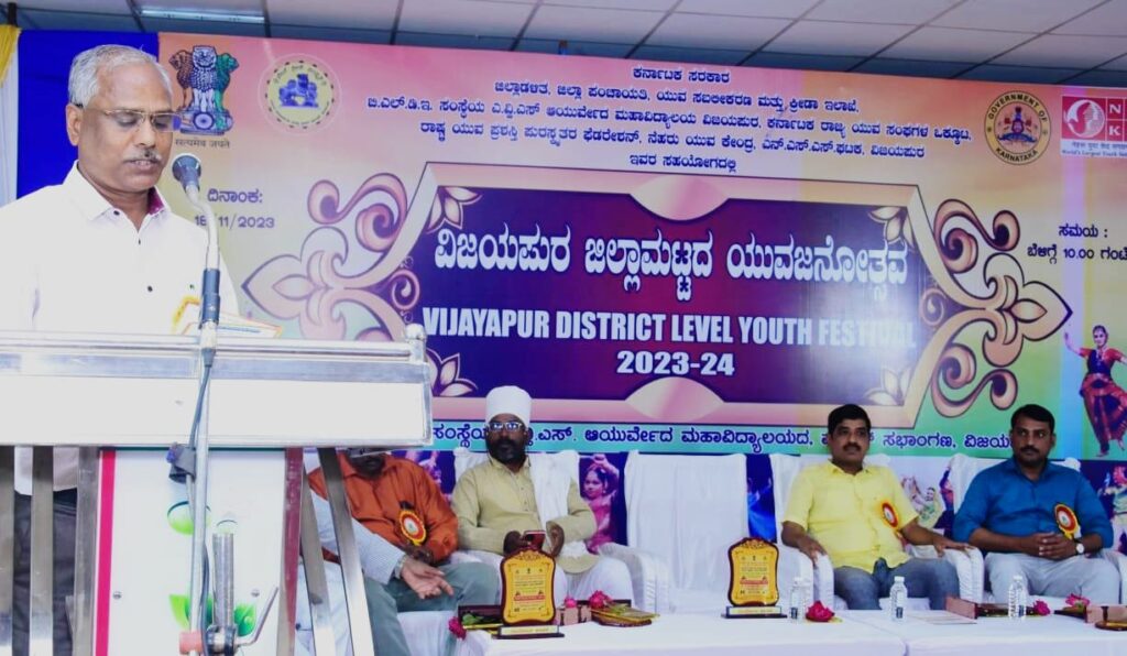 ಜಿಲ್ಲಾಡಳಿತ, ಜಿಲ್ಲಾ ಪಂಚಾಯತ, ಕ್ರೀಡಾ ಮತ್ತು ಯುವ ಸಬಲೀಕರಣ ಇಲಾಖೆ, ಬಿ.ಎಲ್.ಡಿ.ಇ. ಸಂಸ್ಥೆಯ ಎವಿಎಸ್ ಆಯುರ್ವೇದ ಮಹಾವಿದ್ಯಾಲಯ ಇವರ ಸಂಯುಕ್ತಾಶ್ರಯದಲ್ಲಿ ಶನಿವಾರ ನಗರದ ಆಯುರ್ವೇದ ಮಹಾವಿದ್ಯಾಲಯದ ಸಭಾಂಗಣದಲ್ಲಿ ಜಿಲ್ಲಾ ಮಟ್ಟದ ಯುವಜನೋತ್ಸವ ಕಾರ್ಯಕ್ರಮಕ್ಕೆ ಚಾಲನೆ ನೀಡಿ, ಮಾತನಾಡಿದ ಅವರು, ಇಂದಿನ ಯುವಕರು ನಮ್ಮ ದೇಶದ ಸಂಸ್ಕೃತಿ, ಸಂಸ್ಕಾರ, ಕಲೆ ಹಾಗೂ ಸಾಹಿತ್ಯಕ್ಕೆ ಹೆಚ್ಚು ಒತ್ತು ನೀಡುವುದರೊಂದಿಗೆ ಹೆಮ್ಮರವಾಗಿ ಬೆಳೆಸುವಂತಾಗಬೇಕೆಂದು ಹೇಳಿದರು.