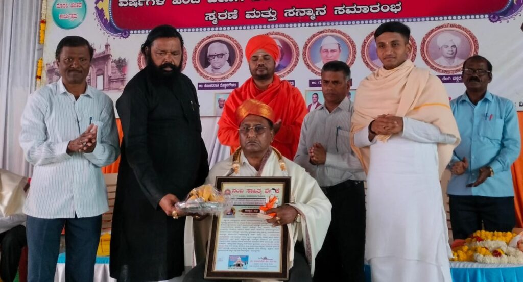 ಪಟ್ಟಣದ ವಿರಕ್ತಮಠದ ಶಿವಾನುಭವ ಮಂಟಪದಲ್ಲಿ ನಂದಿ ಸಾಹಿತ್ಯ ವೇದಿಕೆಯು ಭಾನುವಾರ ಹಮ್ಮಿಕೊಂಡಿದ್ದ ಸ್ಥಳೀಯ ಐತಿಹಾಸಿಕ ಬಸವೇಶ್ವರ ದೇವಾಲಯ ಜೀಣೋದ್ಧಾರಕ್ಕೆ ೬೫ ವರ್ಷಗಳ ಹಿಂದೆ ದೇಣಿಗೆ ನೀಡಿದ ಮಹಾದಾನಿಗಳ ಸ್ಮರಣೆ ಹಾಗೂ ಅವರ ವಂಶಜರಿಗೆ ಸನ್ಮಾನ ಸಮಾರಂಭದ ಸಾನಿಧ್ಯ ವಹಿಸಿ ಮಾತನಾಡಿದ ಅವರು, ತಮ್ಮೊಳಗೆ ಇರುವ ಅಂಶವನ್ನು ಸಮಾಜಕ್ಕೆ ನೀಡುವವರು ನಿಜವಾಗಿ ದೊಡ್ಡವರು. ಪ್ರತಿಯೊಬ್ಬರಿಗೆ ಸಮಾಜಕ್ಕೆ ಏನಾದರೂ ಕೊಡಬೇಕೆಂಬ ಭಾವ ಇರಬೇಕು. ಕೊಡುವ ಭಕ್ತಿ ದೊಡ್ಡದ್ದು. ಸಮಾಜಕ್ಕೆ ದಾನ ನೀಡಿರುವ ಅನೇಕ ದಾನಿಗಳ ಹೆಸರು ನಾಡಿನಲ್ಲಿ ಅಜರಾಮರವಾಗಿವೆ. ೬೫ ವರ್ಷಗಳ ಹಿಂದೆ ಬಸವೇಶ್ವರ ದೇವಾಲಯಕ್ಕೆ ದಾನ ನೀಡಿದ ಮಹನೀಯರ ವಂಶಜರನ್ನು ಆಹ್ವಾನಿಸಿ ಅವರಿಗೆ ಗೌರವ ಸಲ್ಲಿಸುವ ಕಾರ್ಯ ಮಾಡುತ್ತಿರುವ ನಂದಿ ಸಾಹಿತ್ಯ ವೇದಿಕೆಯ ಕಾರ್ಯ ಸಾರ್ಥಕತೆಯಿಂದ ಕೂಡಿದೆ. ಸಮಾಜದಲ್ಲಿ ಎಲ್ಲರೂ ಮನಸ್ಸುಗಳನ್ನು ಜೋಡಿಸುವ ಕಾರ್ಯ ಮಾಡಬೇಕಿದೆ. ಈ ಸಾಹಿತ್ಯ ವೇದಿಕೆಯಿಂದ ನಿರಂತರವಾಗಿ ಸಾಮಾಜಿಕ ಕಾರ್ಯಗಳು ನಡೆಯುವಂತಾಗಲಿ ಎಂದರು.