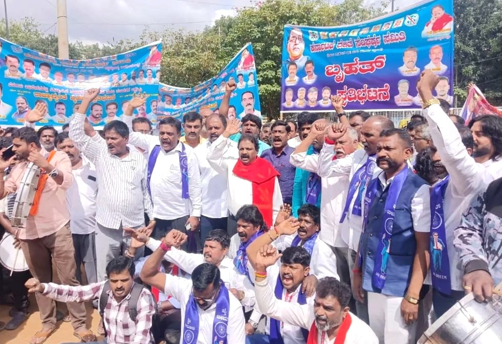 ಬೆಂಗಳೂರು: ಮುಂದಿನ ತಿಂಗಳು ಬೆಳಗಾವಿಯಲ್ಲಿ ನಡೆಯಲಿರುವ ಚಳಿಗಾಲದ ಅಧಿವೇಶನದಲ್ಲಿ ನಿವೃತ್ತ ನ್ಯಾಯಮೂರ್ತಿ ಎ.ಜೆ.ಸದಾಶಿವ ಆಯೋಗದ ವರದಿ ಮಂಡನೆ ಮಾಡಲು ರಾಜ್ಯ ಸರಕಾರ ಮುಂದಾಗಬೇಕೆಂದು ಆಗ್ರಹಿಸಿ ದಲಿತ ಸಂಘರ್ಷ ಸಮಿತಿ ಸದಸ್ಯರು ಬೃಹತ್ ಚಳವಳಿ ನಡೆಸಿದರು.
