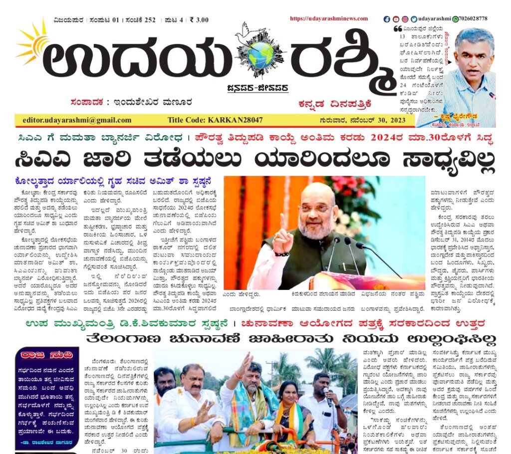 Share Facebook Twitter LinkedIn Email Telegram WhatsApp Udayarashmi kannada daily newspaperUdayarashmi-30-Nov-2023DownloadBIJAPUR NEWS public public news udaya rashmi Udayarashmi today newspaper udayarashminews.com