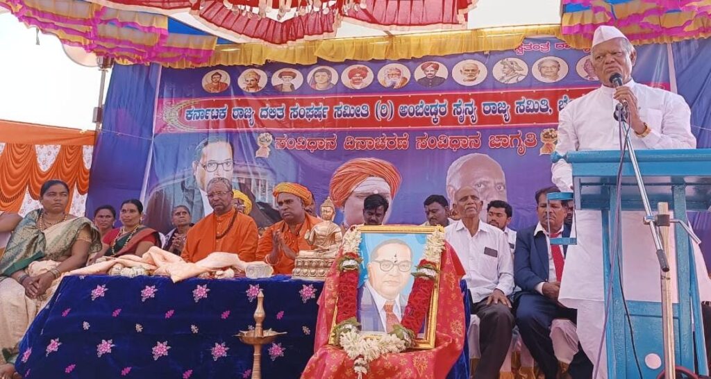 ಕರ್ನಾಟಕ ರಾಜ್ಯ ದಲಿತ ಸಂಘರ್ಷ ಸಮಿತಿ ಹಾಗೂ ಅಂಬೇಡ್ಕರ ಸೈನ್ಯ ಜಿಲ್ಲಾ ಸಮಿತಿ ಗುರುವಾರ ಆಲಮಟ್ಟಿಯಲ್ಲಿ ಏರ್ಪಡಿಸಿದ್ದ ಸಂವಿಧಾನ ದಿನಾಚರಣೆ ಹಾಗೂ ಸಂವಿಧಾನ ಜಾಗೃತಿ ಸಮಾರಂಭದಲ್ಲಿ ಪಾಲ್ಗೊಂಡು ಅವರು ಮಾತನಾಡಿದರು.