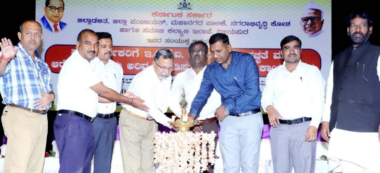 ಜಿಲ್ಲಾಡಳಿತ, ಜಿಲ್ಲಾ ಪಂಚಾಯತ್, ಮಹಾನಗರ ಪಾಲಿಕೆ, ನಗರಭಿವೃದ್ಧಿ ಕೋಶ ಹಾಗೂ ಸಮಾಜ ಕಲ್ಯಾಣ ಇಲಾಖೆ ವಿಜಯಪುರ ವತಿಯಿಂದ ಕಂದಗಲ್ ಹನುಮಂತರಾಯ ರಂಗಮಂದಿರದಲ್ಲಿ ಹಮ್ಮಿಕೊಂಡ ಪೌರಕಾರ್ಮಿಕರಿಗೆ ಇ.ಎಸ್.ಐ, ಪಿಎಫ್ ವಿಮೆ, ಸ್ವಚ್ಛತೆ ಮತ್ತು ಆರೋಗ್ಯ ಕುರಿತು ಅರಿವು ಮೂಡಿಸುವ ಒಂದು ದಿನದ ಕಾರ್ಯಗಾರಕ್ಕೆ ಚಾಲನೆ ನೀಡಿ ಅವರು ಮಾತನಾಡಿದರು.