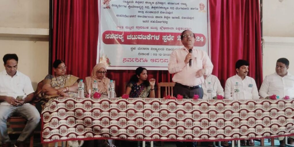 ನಗರದ ಮರಾಠಾ ವಿಧ್ಯಾಲಯದಲ್ಲಿ ಶನಿವಾರ ನಡೆದ ರಾಷ್ಟ್ರೀಯ ಶಿಕ್ಷಕರ ಕಲ್ಯಾಣ ಪ್ರತಿಷ್ಠಾನ, ಕರ್ನಾಟಕ ರಾಜ್ಯ ವಿಧ್ಯಾರ್ಥಿಗಳ ಕ್ಷೇಮಾಭಿವೃದ್ಧಿ ನಿಧಿ, ಶಿಕ್ಷಕರ ಕಲ್ಯಾಣ ನಿಧಿ ಬೆಂಗಳೂರ, ಜಿಲ್ಲಾ ಪಂಚಾಯತಿ ವಿಜಯಪುರ, ಉಪನಿರ್ದೇಶಕರ ಕಾರ್ಯಾಲಯ ಶಾಲಾ ಶಿಕ್ಷಣ ಮತ್ತು ಸಾಕ್ಷರತಾ ಇಲಾಖೆ ಇವರ ಸಹಯೋಗದಲ್ಲಿ ಜಿಲ್ಲಾ ಮಟ್ಟದ ಪ್ರಾಥಮಿಕ ಹಾಗೂ ಪ್ರೌಢ ಶಿಕ್ಷಕರಿಗಾಗಿ ನಡೆದ ಜಿಲ್ಲಾ ಮಟ್ಟದ 2023-24ನೇ ಸಾಲಿನ ಸಹಪಠ್ಯ ಚಟುವಟಿಕೆ ಸ್ಪರ್ಧೆಯ ಕಾರ್ಯಕ್ರಮ ಉದ್ಘಾಟಿಸಿ ಅವರು ಮಾತನಾಡಿದರು.