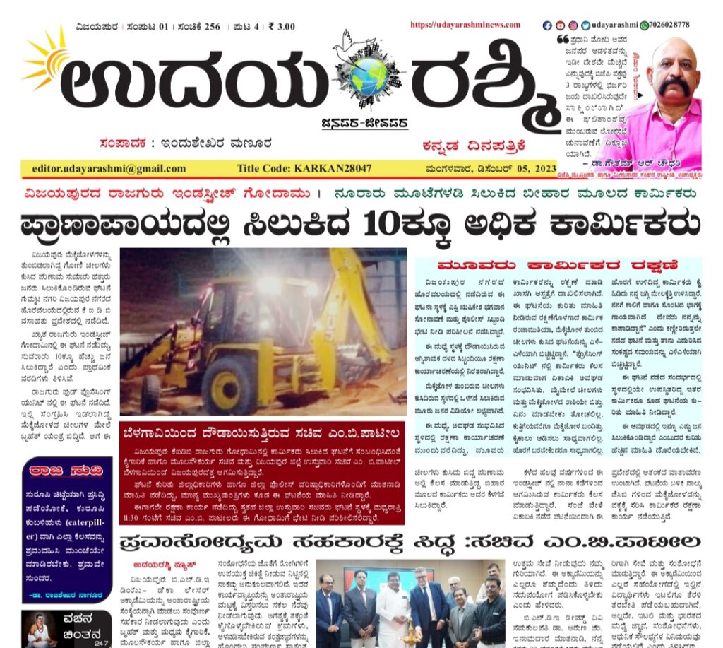 Share Facebook Twitter LinkedIn Email Telegram WhatsApp Udayarashmi kannada daily newspaperUdayarashmi-05-Dec-2023DownloadBIJAPUR NEWS public public news udaya rashmi Udayarashmi today newspaper udayarashminews.com