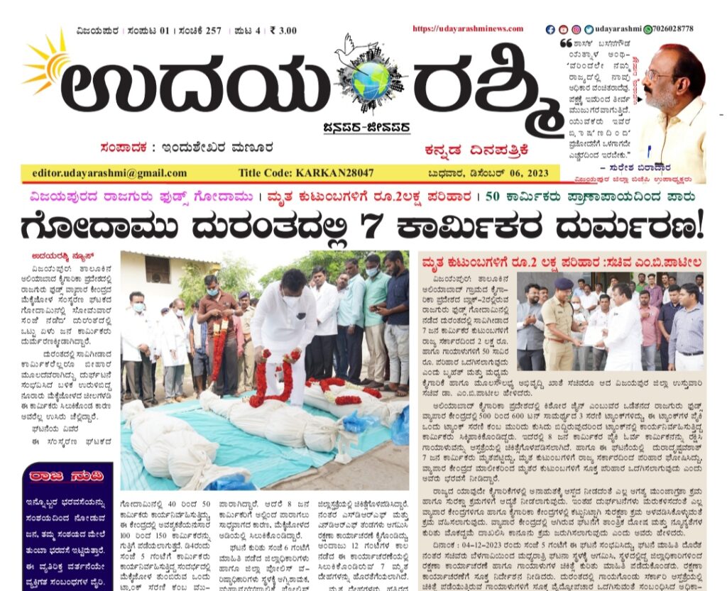 Share Facebook Twitter LinkedIn Email Telegram WhatsApp Udayarashmi kannada daily newspaperUdayarashmi-06-Dec-2023DownloadBIJAPUR NEWS public public news udaya rashmi Udayarashmi today newspaper udayarashminews.com
