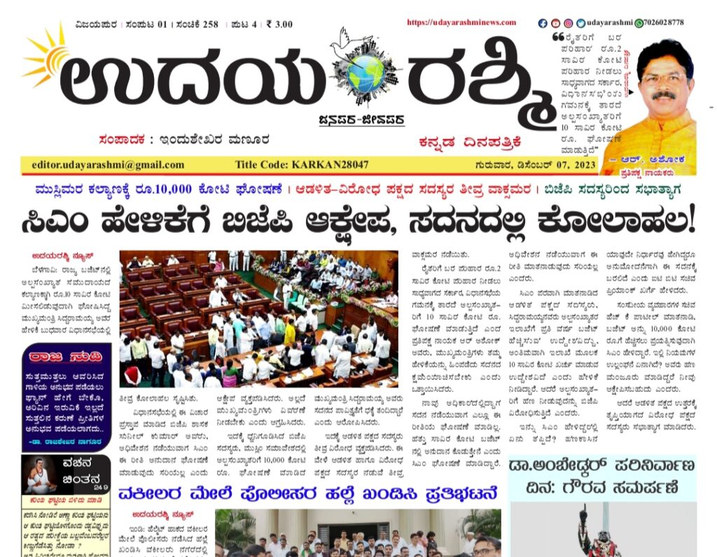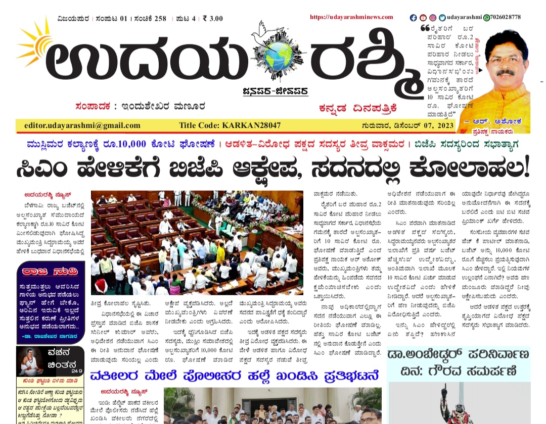 Share Facebook Twitter LinkedIn Email Telegram WhatsApp Udayarashmi kannada daily newspaperUdayarashmi-07-Dec-2023DownloadBIJAPUR NEWS public public news udaya rashmi Udayarashmi today newspaper udayarashminews.com
