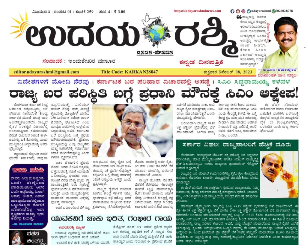 Share Facebook Twitter LinkedIn Email Telegram WhatsApp Udayarashmi kannada daily newspaperUdayarashmi-08-Dec-2023DownloadBIJAPUR NEWS public public news udaya rashmi Udayarashmi today newspaper udayarashminews.com
