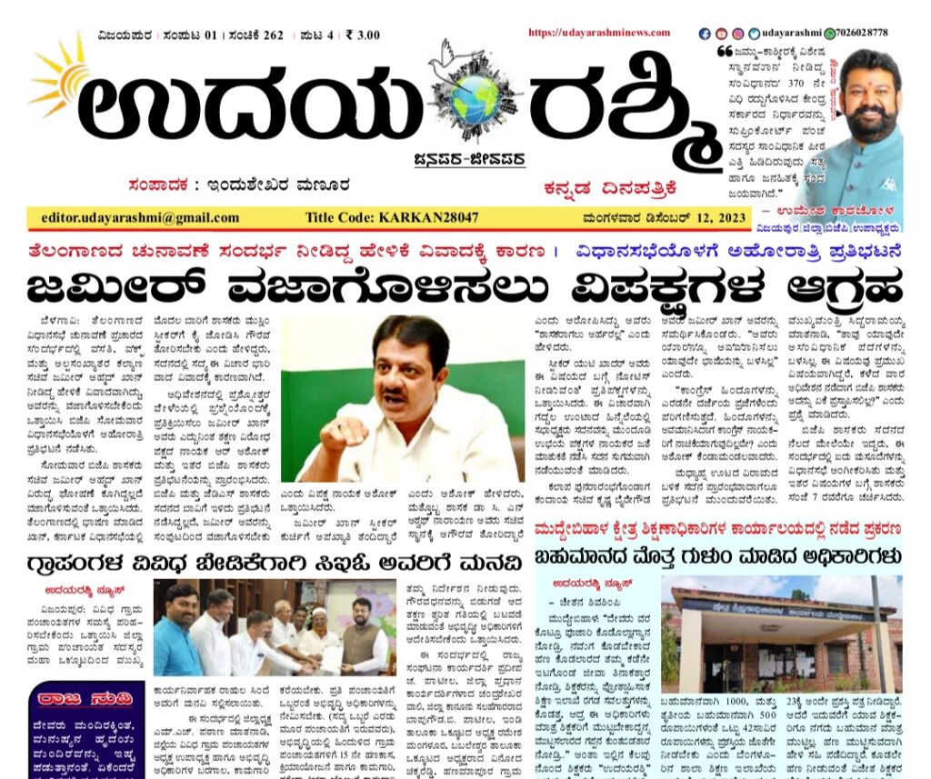 Share Facebook Twitter LinkedIn Email Telegram WhatsApp Udayarashmi kannada daily newspaperUdayarashmi-12-Dec-2023DownloadBIJAPUR NEWS public public news udaya rashmi Udayarashmi today newspaper udayarashminews.com