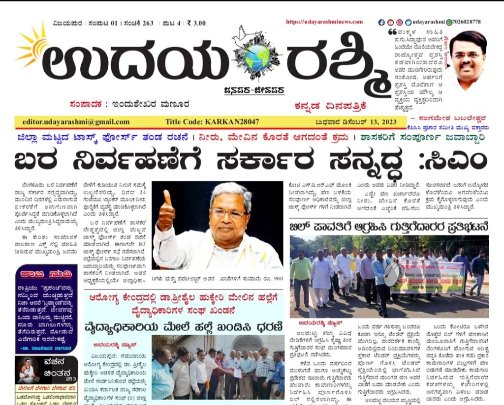 Share Facebook Twitter LinkedIn Email Telegram WhatsApp Udayarashmi kannada daily newspaperUdayarashmi-13-Dec-2023DownloadBIJAPUR NEWS public public news udaya rashmi Udayarashmi today newspaper udayarashminews.com