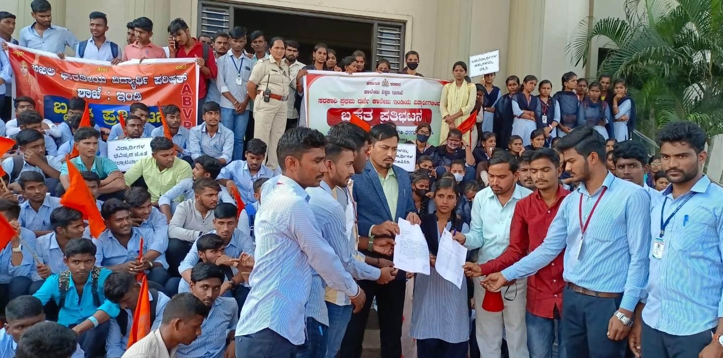 ಅತಿಥಿ ಉಪನ್ಯಾಸಕರ ಮುಷ್ಕರದಿಂದಾಗಿ ತರಗತಿಗಳು ನಡೆಯುತ್ತಿಲ್ಲವೆಂದು ಆರೋಪಿಸಿ ಬೃಹತ್ ಪ್ರತಿಭಟನೆ