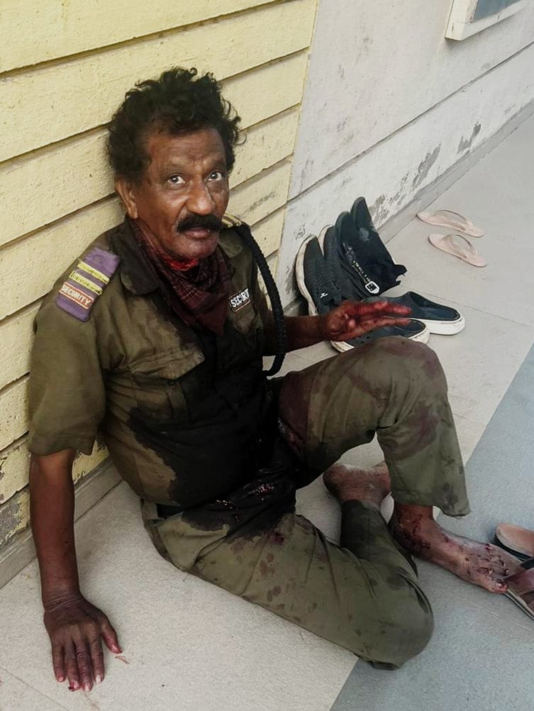 ಗುಲಾಬ್ ಮುಹಮ್ಮದ್ ಮುಜಾವರ ಹಲ್ಲೆಗೊಳಗಾದ ಸೆಕ್ಯೂರಿಟಿ ಗಾರ್ಡ ಆಗಿದ್ದಾರೆ.