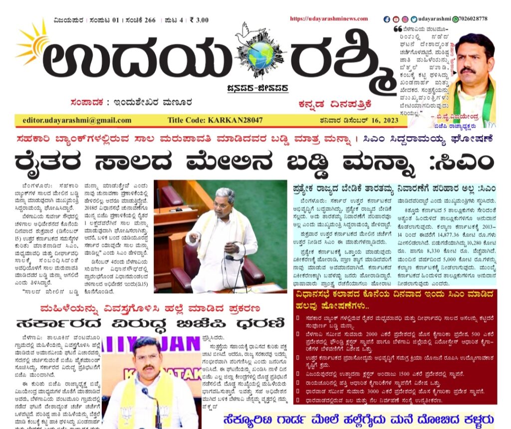 Share Facebook Twitter LinkedIn Email Telegram WhatsApp Udayarashmi kannada daily newspaperUdayarashmi-16-Dec-2023DownloadBIJAPUR NEWS public public news udaya rashmi Udayarashmi today newspaper udayarashminews.com