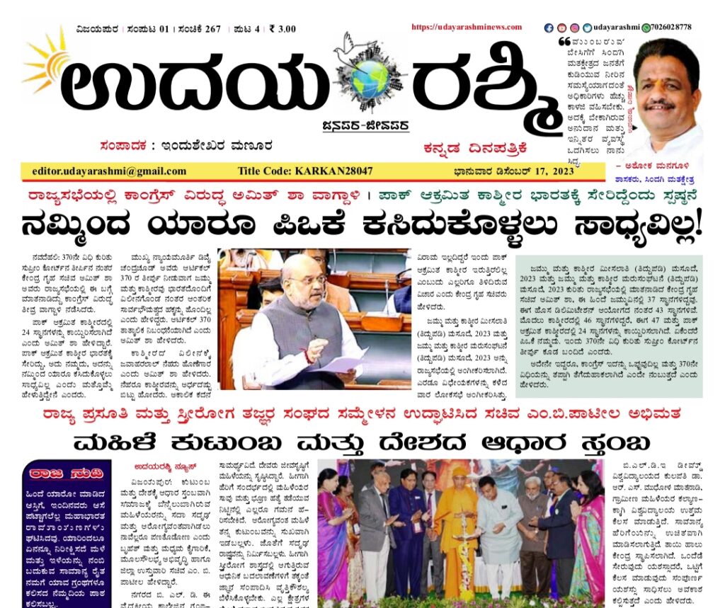 Share Facebook Twitter LinkedIn Email Telegram WhatsApp Udayarashmi kannada daily newspaperUdayarashmi-17-Dec-2023DownloadBIJAPUR NEWS public public news udaya rashmi Udayarashmi today newspaper udayarashminews.com