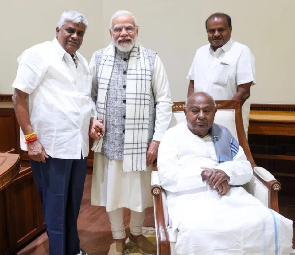 ಜೆಡಿಎಸ್ ನಾಯಕರ ಭೇಟಿ ಕುರಿತು ಎಕ್ಸ್ ನಲ್ಲಿ ಪೋಸ್ಟ್ ಮಾಡಿರುವ ಪ್ರಧಾನಿ ಮೋದಿ, ‘ರಾಷ್ಟ್ರದ ಪ್ರಗತಿಗೆ ದೇವೇಗೌಡರ ಅನುಕರಣೀಯ ಕೊಡುಗೆಯನ್ನು ಭಾರತವು ಬಹಳವಾಗಿ ಗೌರವಿಸುತ್ತದೆ. ವೈವಿಧ್ಯಮಯ ನೀತಿ, ವಿಷಯಗಳ ಕುರಿತು ಅವರ ಆಲೋಚನೆ ಹಾಗೂ ಒಳನೋಟ ದೂರದೃಷ್ಠಿಯಿಂದ ಕೂಡಿದೆ’ ಎಂದು ಬರೆದುಕೊಂಡಿದ್ದಾರೆ.