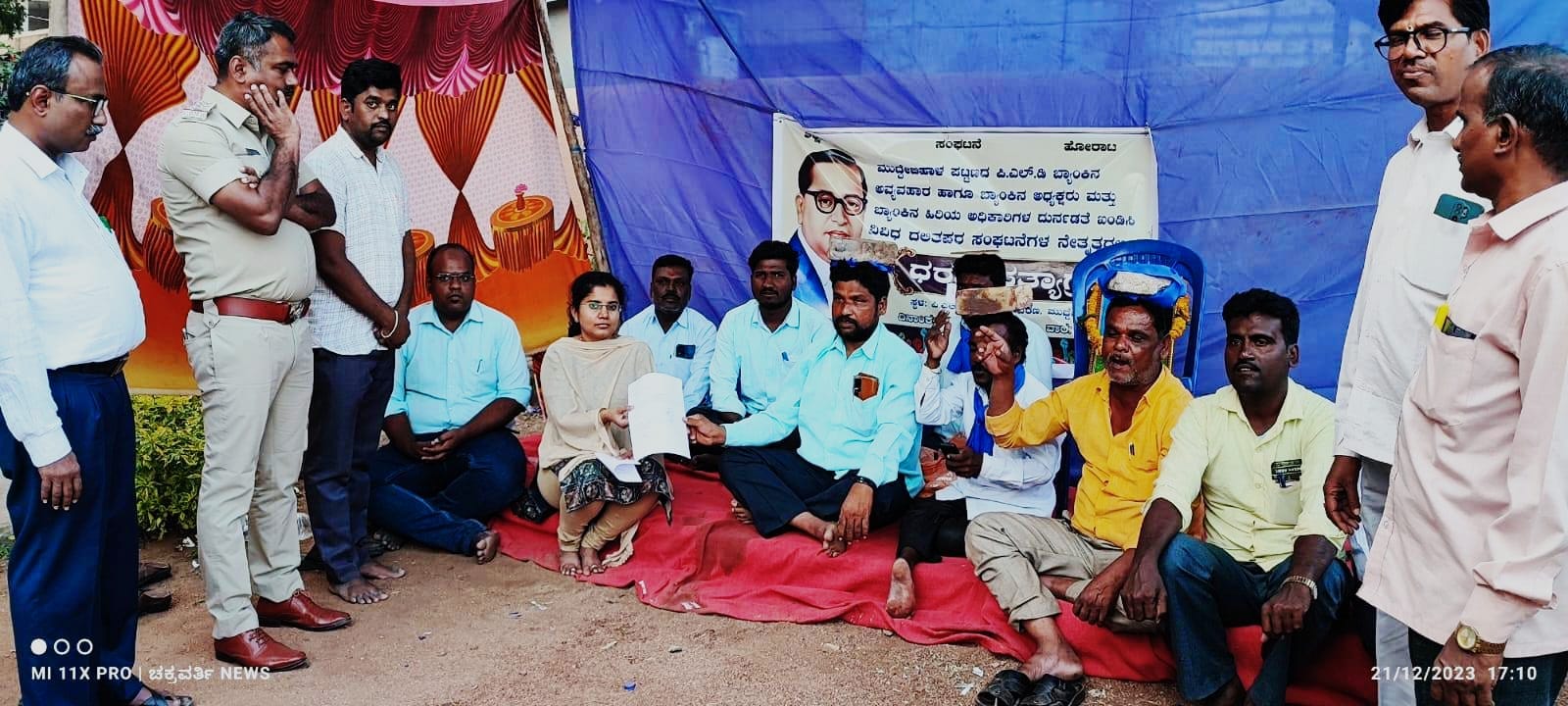 ಮುದ್ದೇಬಿಹಾಳ: ಇಲ್ಲಿನ ಪಿಎಲ್ಡಿ ಬ್ಯಾಂಕ್ ನಲ್ಲಿ ಸಾಕಷ್ಟು ಅವ್ಯವಹಾರಗಳು ನಡೆದಿವೆ. ಬ್ಯಾಂಕಿನ ಅಧ್ಯಕ್ಷ ಮತ್ತು ಹಿರಿಯ ಅಧಿಕಾರಿಗಳ ದುರ್ನಡತೆ ಎಂದು ಆರೋಪಿಸಿ ಮತ್ತು ತನಿಖೆ ನಡೆಸಿ ಸೂಕ್ತ ಕ್ರಮ ಕೈಗೊಳ್ಳಬೇಕು ಎಂದು ಆಗ್ರಹಿಸಿ ವಿವಿಧ ದಲಿತಪರ ಸಂಘಟನೆಗಳ ವತಿಯಿಂದ ಬ್ಯಾಂಕ್ ಎದುರು ಕಳೆದ ನಾಲ್ಕು ದಿನಗಳಿಂದ ನಡೆಸುತ್ತಿದ್ದ ಧರಣಿ ವಿಜಯಪುರದ ಸಹಕಾರಿ ಸಂಘಗಳ ಉಪನಿಬಂಧಕರ ಲಿಖಿತ ಭರವಸೆಯ ಮೇರೆಗೆ ಗುರುವಾರ ತಾತ್ಕಾಲಿಕ ಅಂತ್ಯ ಕಂಡಿದೆ.