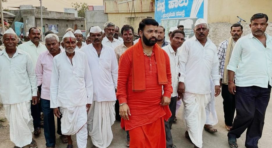 ಬಸವನಬಾಗೇವಾಡಿ: ತಾಲೂಕಿನ ಮನಗೂಳಿ ಹಿರೇಮಠದ ಕಲ್ಯಾಣ ಮಂಟಪ ಲೋಕಾರ್ಪಣೆ, ನೂತನ ರಥೋತ್ಸವ, ಡಾ.ಜಗದ್ಗುರು ಡಾ.ಮಹಾಂತ ಶಿವಾಚಾರ್ಯ ಸ್ವಾಮೀಜಿ ಅವರ ೧೧ ನೇ ಪುಣ್ಯಾರಾಧನೆ, ೫೦೦೮ ಮುತ್ತೈದೆಯರಿಗೆ ಉಡಿ ತುಂಬುವ ಕಾರ್ಯಕ್ರಮ, ೨೦೦೮ ಕುಂಭ, ೨೫ ಮಂಟಪ ಪೂಜೆ ಸೇರಿದಂತೆ ವಿವಿಧ ಕಾರ್ಯಕ್ರಮಗಳನ್ನು ಜ.೩ ಮತ್ತು ೪ ರಂದು ಹಮ್ಮಿಕೊಂಡ ಹಿನ್ನೆಲೆಯಲ್ಲಿ ಹಿರೇಮಠದ ಪೀಠಾಧಿಪತಿ ಅಭಿನವ ಸಂಗನಬಸವ ಶಿವಾಚಾರ್ಯ ಸ್ವಾಮೀಜಿ ಅವರು ಗುರುವಾರ ಮನಗೂಳಿ ಪಟ್ಟಣದಲ್ಲಿ ಪಾದಯಾತ್ರೆ ಮಾಡುವ ಮೂಲಕ ದುಶ್ಚಟಗಳ ತ್ಯಜಿಸುವಂತೆ ಪ್ರತಿಯೊಬ್ಬರಿಗೆ ರುದ್ರಾಕ್ಷಿ ಧಾರಣೆ ಮಾಡಿ ಕಾರ್ಯಕ್ರಮದ ಜಾಗೃತಿಗೆ ಚಾಲನೆ ನೀಡಿದರು.