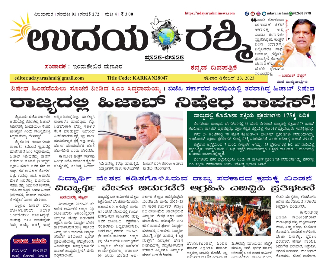 Share Facebook Twitter LinkedIn Email Telegram WhatsApp Udayarashmi kannada daily newspaperUdayarashmi-23-Dec-2023DownloadBIJAPUR NEWS public public news udaya rashmi Udayarashmi today newspaper udayarashminews.com