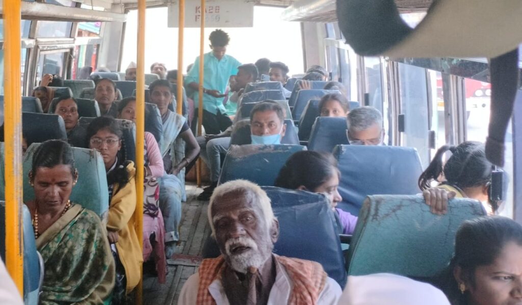 ರಾಜ್ಯ ಸರ್ಕಾರ ೬೦ ದಾಟಿದವರು ಕಡ್ಡಾಯವಾಗಿ ಮಾಸ್ಕ್ ಹಾಕಿಕೊಳ್ಳುವಂತೆ ಸೂಚಿಸಿದರೂ ಬಹುತೇಕರು ಮಾಸ್ಕ್ ಇಲ್ಲದೇ ಸಂಚಾರ ಮಾಡುತ್ತಿದ್ದಾರೆ. ಬಸ್ ಪ್ರಯಾಣಿಕರು ಮುನ್ನಚ್ಚರಿಕೆ ಕ್ರಮವಾಗಿ ಬಸ್ನಲ್ಲಿ ಸಂಚರಿಸುವಾಗ ಮಾಸ್ಕ್ ಧರಿಸುವಂತೆ ಸಾರಿಗೆ ಸಚಿವರು ಮನವಿ ಮಾಡಿಕೊಂಡಿದ್ದರೂ ಬಹುತೇಕ ಬಸ್ ಪ್ರಯಾಣಿಕರು ಮಾಸ್ಕ್ ರಹಿತರಾಗಿ ಸಂಚಾರ ಮಾಡುತ್ತಿದ್ದಾರೆ. ರಾಜ್ಯ ಸರ್ಕಾರ ಶಕ್ತಿಯೋಜನೆಯಡಿ ಮಹಿಳೆಯರಿಗೆ ಉಚಿತ ಬಸ್ ಪ್ರಯಾಣಕ್ಕೆ ಅವಕಾಶ ನೀಡಿದ್ದರಿಂದ ಹೆಚ್ಚು ಮಹಿಳೆಯರು ಪ್ರಯಾಣ ಮಾಡುತ್ತಿದ್ದಾರೆ. ಬಸ್ಗಳು ತುಂಬಿ ತುಳುಕುತ್ತಿವೆ. ಜನಸಂದಣಿ ಇರುವೆಡೆ ಮಾಸ್ಕ್ ಧರಿಸುವಂತೆ ಸರ್ಕಾರ ಸೂಚನೆ ನೀಡಿದರೂ ಇದಕ್ಕೆ ಜನರು ಕ್ಯಾರೇ ಎನ್ನುತ್ತಿಲ್ಲ. ಬಸ್ ನಿಲ್ದಾಣ ಸೇರಿದಂತೆ ಎಲ್ಲೆಡೆ ಜನಸಂದಣಿ ಇರುವೆಡೆ ಬಹುತೇಕರು ಮಾಸ್ಕ್ ಧರಿಸದೇ ಸಂಚಾರ ಮಾಡುತ್ತಿದ್ದಾರೆ.