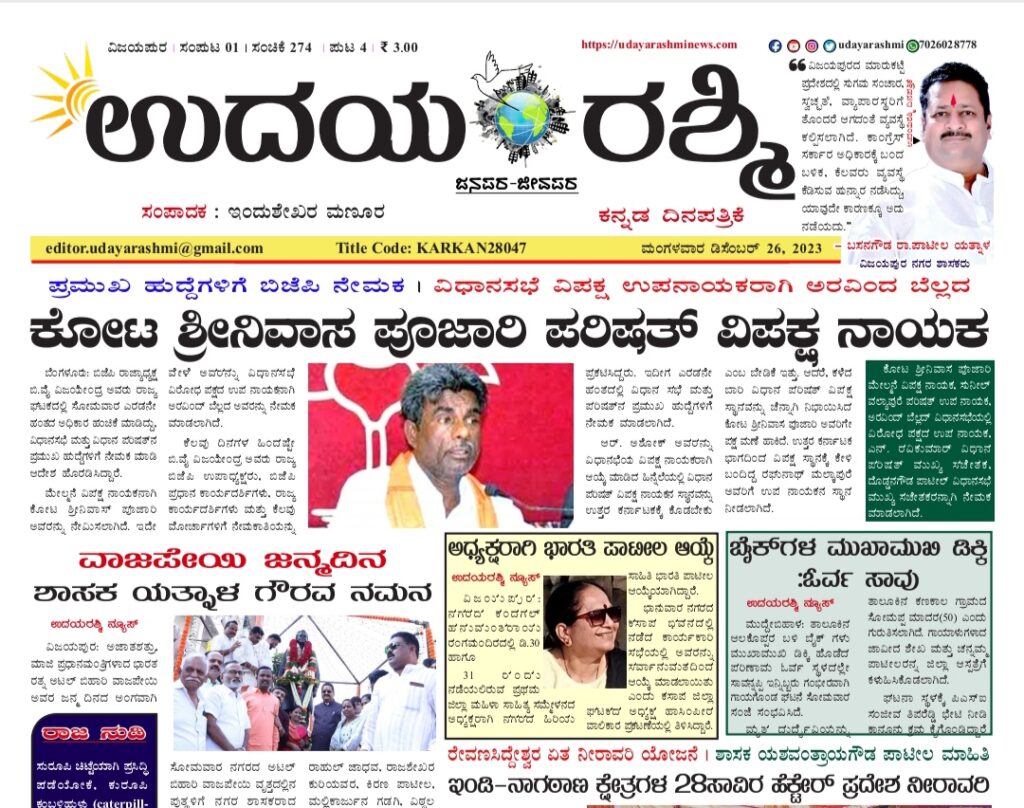 ಉದಯರಶ್ಮಿ ಇಂದಿನ ದಿನಪತ್ರಿಕೆ ಡಿಸೆಂಬರ್ 26, 2023