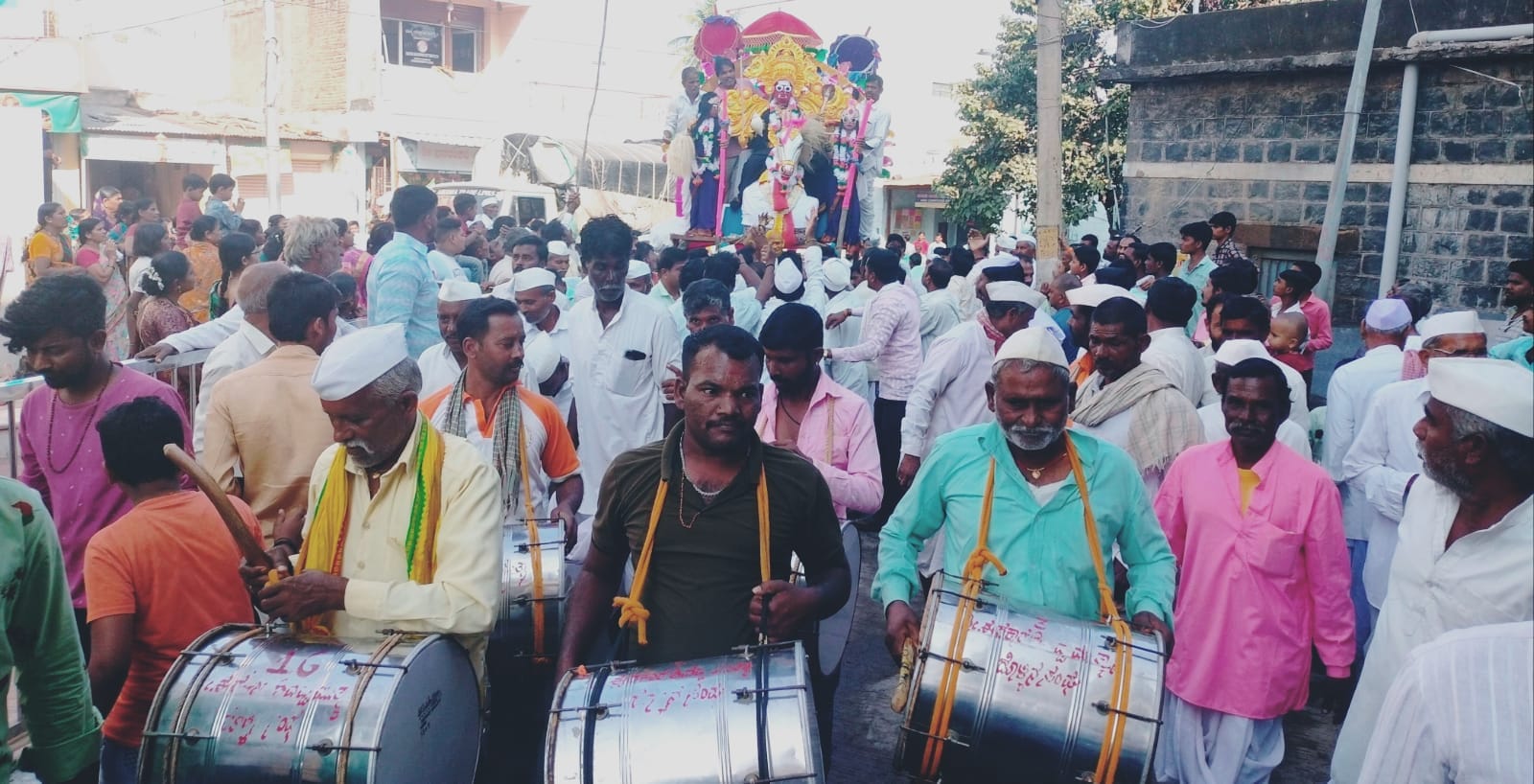 ಮೆರವಣಿಗೆ ಸಾಗುವ ರಸ್ತೆಯ ಎರಡು ಬದಿಯಲ್ಲಿ ಜಮಾಯಿಸಿದ್ದ ಭಕ್ತ ಸಮೂಹ ಉತ್ತತ್ತಿ, ಚುನಮರಿ, ಬಾರಿಕಾಯಿ ತೂರಿ ದೇವರಿಗೆ ನಮಸ್ಕರಿಸಿ ಧನ್ಯತಾ ಭಾವ ಅನುಭವಿಸಿದರು.