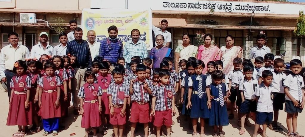 ಮುದ್ದೇಬಿಹಾಳ: ಜ್ಞಾನ ಭಾರತಿ ವಿದ್ಯಾ ಮಂದಿರ ಸಮೂಹ ಶಿಕ್ಷಣ ಸಂಸ್ಥೆಯಲ್ಲಿ ವಿದ್ಯಾ ಸಂಸ್ಥೆಯ ಸ್ಥಾಪನೆಗೆ ಕಾರಣೀಕರ್ತರಾದ ಹಿಂದೂ ಸೇವಾ ಪ್ರತಿಷ್ಠಾನದ ಪ್ರಥಮ ನಿರ್ದೇಶಕರಾದ ದಿ.ಅಜಿತಕುಮಾರರವರ ಸ್ಮೃತಿ ದಿವಸದ ನಿಮಿತ್ತ ಮುದ್ದೇಬಿಹಾಳದ ಜ್ಞಾನ ಭಾರತಿ ವಿದ್ಯಾಮಂದಿರದ ವಿದ್ಯಾರ್ಥಿಗಳಿಂದ ಸರ್ಕಾರಿ ಆಸ್ಪತ್ರೆಗಳಿಗೆ ತೆರಳಿ ಆಸ್ಪತ್ರೆಯಲ್ಲಿರುವ ರೋಗಿಗಳಿಗೆ ಹಣ್ಣು-ಹಂಫಲಗಳನ್ನು ಹಂಚುವ ಕಾರ್ಯ ನಡೆಯಿತು.