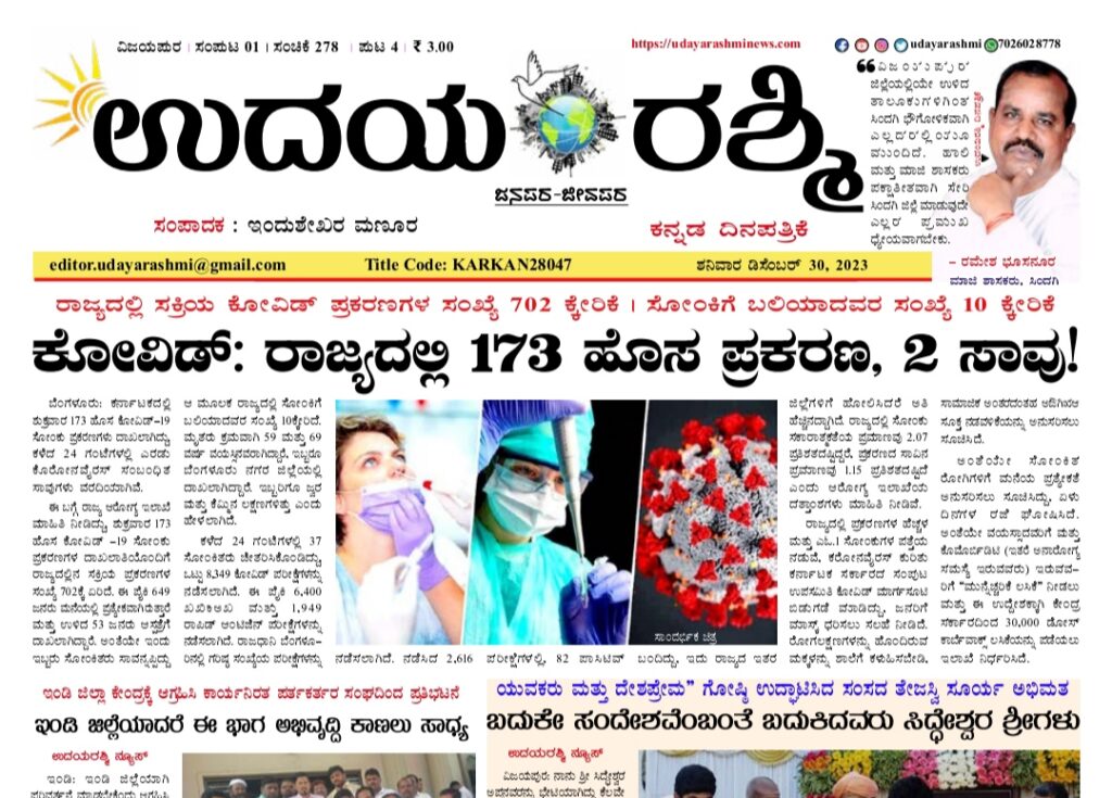 Share Facebook Twitter LinkedIn Email Telegram WhatsApp Udayarashmi kannada daily newspaperUdayarashmi-30-Dec-2023DownloadBIJAPUR NEWS public public news udaya rashmi Udayarashmi today newspaper udayarashminews.com